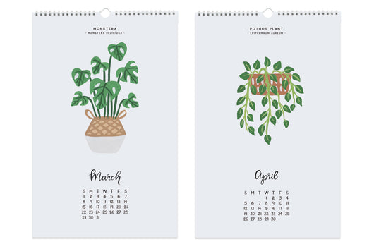 The House Plants Calendar for year 2026 features 12 popular indoor plants. This calendar is great for all those plant lovers and green thumbs, and is also perfect for all those with black thumbs who can't quite keep a plant alive but can enjoy them in this wall-art calendar -- all year long!