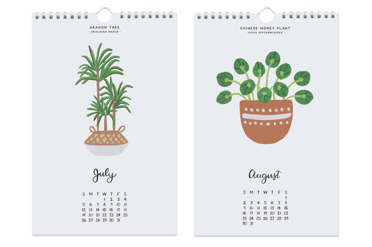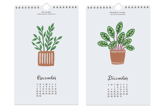 The mini version of the House Plants Calendar for year 2026 features 12 popular indoor plants. This calendar is great for all those plant lovers and green thumbs, and is also perfect for all those with black thumbs who can't quite keep a plant alive but can enjoy them in this wall-art calendar -- all year long!